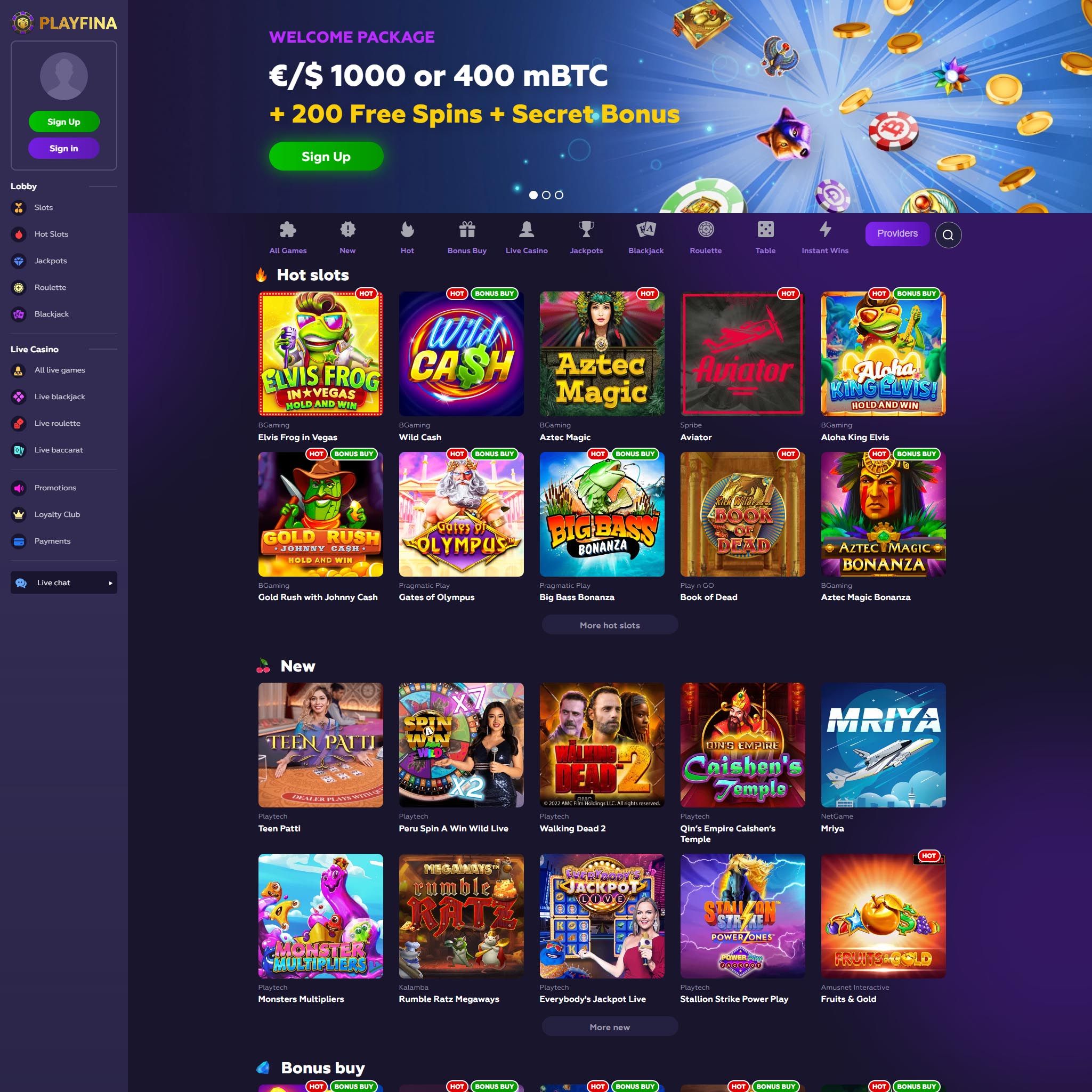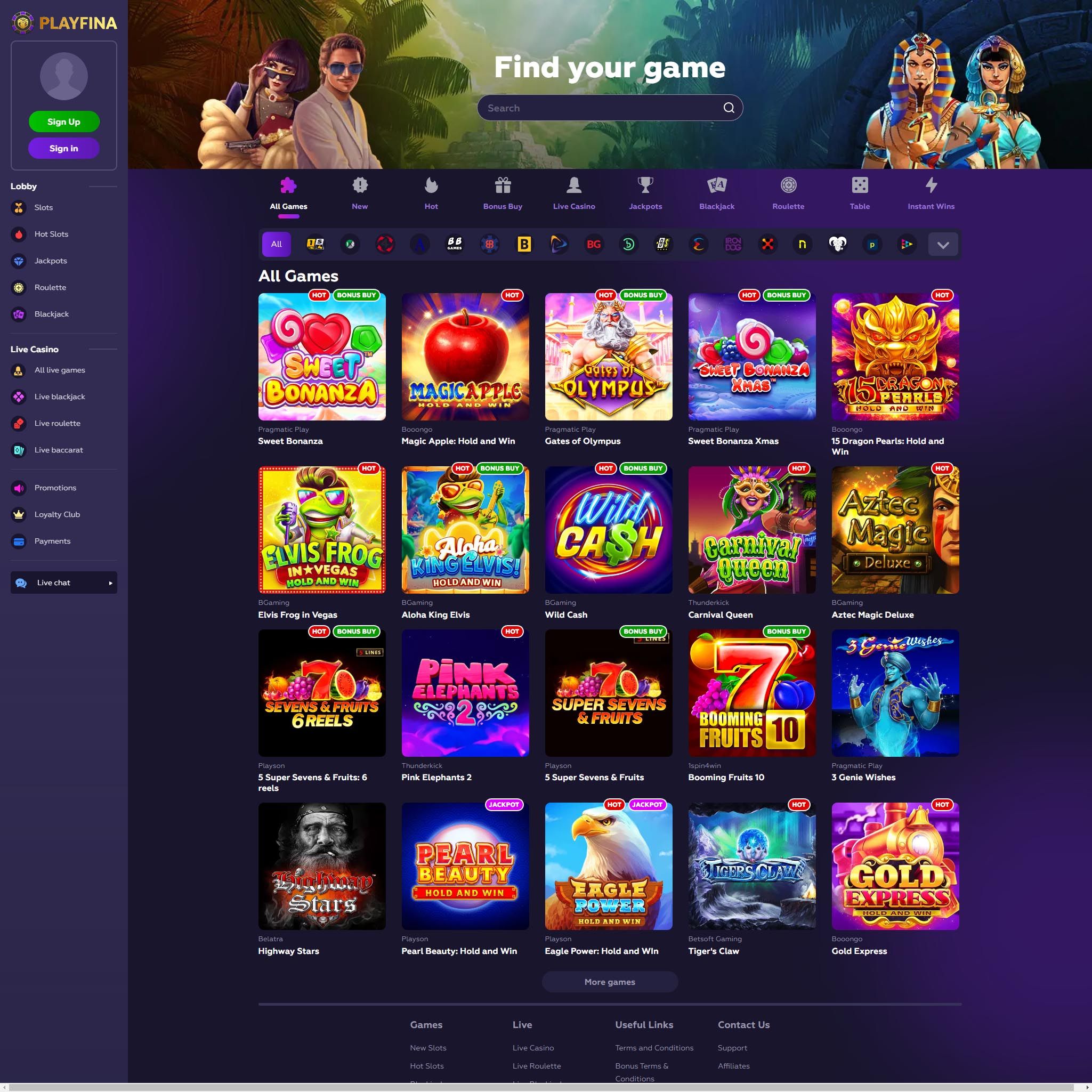 On Playfina, you can find a diverse range of games including slot machines, table games, live casino games, and more. Whether you prefer classic casino games or modern video slots, Playfina has something for every player’s taste.